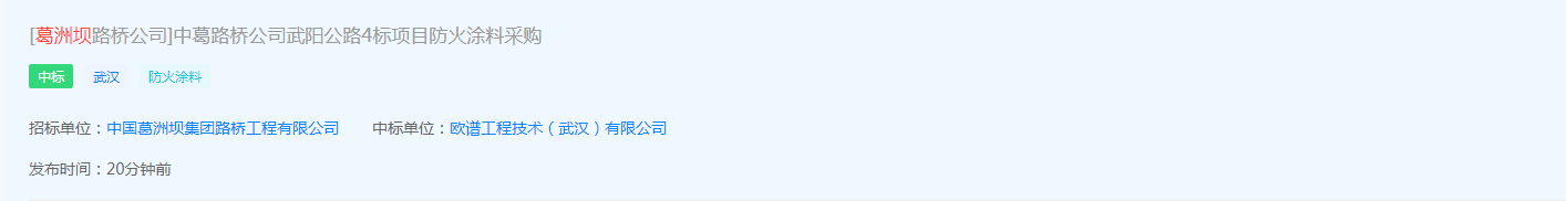 项目二:葛洲坝路桥公司]中葛路桥公司武阳公路4标项目防火涂料采购